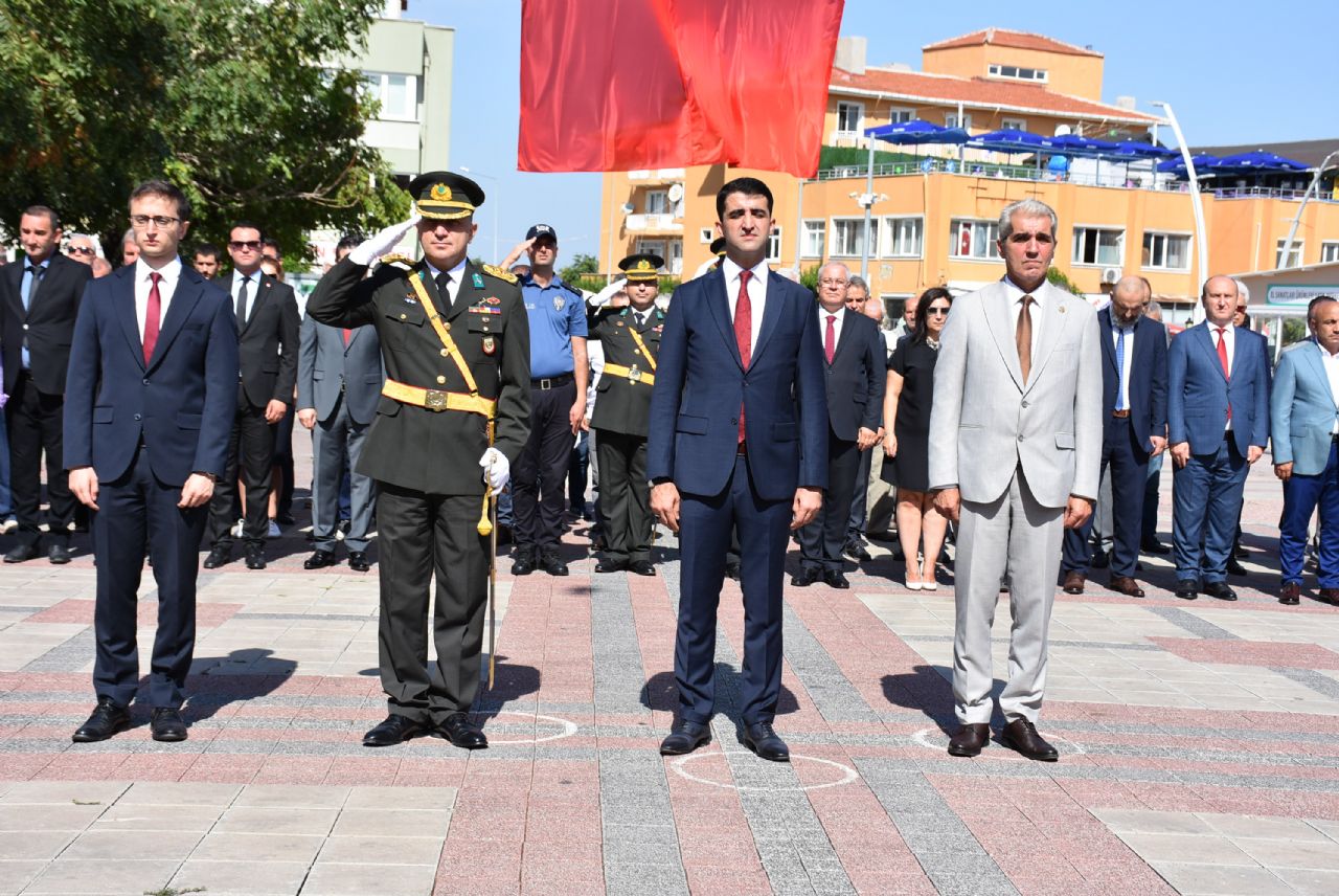 Cumhuriyet meydanındaki tören ise Kaymakamlık, Garnizon Komutanlığı, Belediye Başkanlığı ve siyasi partilerin Cumhuriyet meydanındaki Atatürk Anıtına çelenk sunumu, saygı duruşu ve İstiklal Marşı’nın okunması ile devam etti.