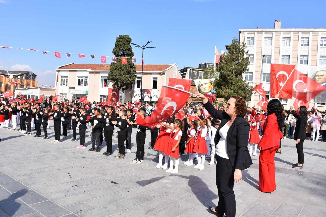 Cumhuriyet Meydanındaki Atatürk Anıtı’na çelenk konulması, saygı duruşu ve İstiklal Marşı’nın okunması ile başlayan fener alayı ve havai fişek gösterileri ile süren Türkiye Cumhuriyetinin kuruluşunun 100. yıl dönümü kutlamalarına dün de büyük bir coşku içinde devam edildi.