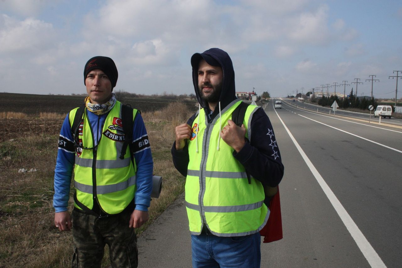 Çanakkale Deniz Zaferi'nin 105. yılı nedeniyle, şehit ve gaziler için bu yıl İpsala'dan 3. defa yola çıkan Yılmaz Bayraktar ve Murat Sansar, yaklaşık 170 kilometreyi 3 günde kat ederek Şehitler Abidesi'ne vardı.