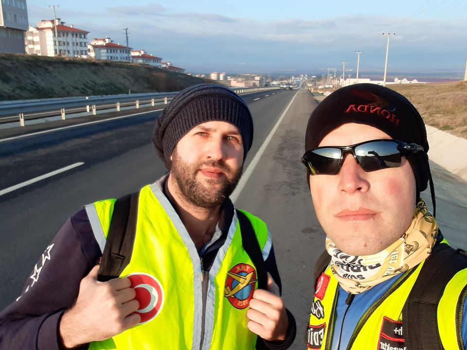 Yürüyüşe Murat Sansar ile birlikte başlayan Yılmaz Bayraktar,”9000 nüfuslu ilçemizde projeme destek veren benimle sabah 8'den beri yürüyen koca yürekli insan değerli dostum Murat Sansar yürüyüş esnasında keyifsizlendi rahatsızlandı. Şuan ailesi ile birlikte Keşan Devlet Hastanesinde tedavi altında. Tek isteğiydi benimle 3 gün boyunca şehitlerimiz ve gazilerimiz için yürümek. Şuan görüştüm “biraz daha iyiyim arkadaşım” dedi Dualarımız Murat İçin... Eskisinden iyi olacaksın dostum. Geçmiş olsun acil şifalar diliyorum. Yürüyüşümü değerli arkadaşım için tamamlayacağım ona armağan edeceğim sizlere selamları var” dedi.