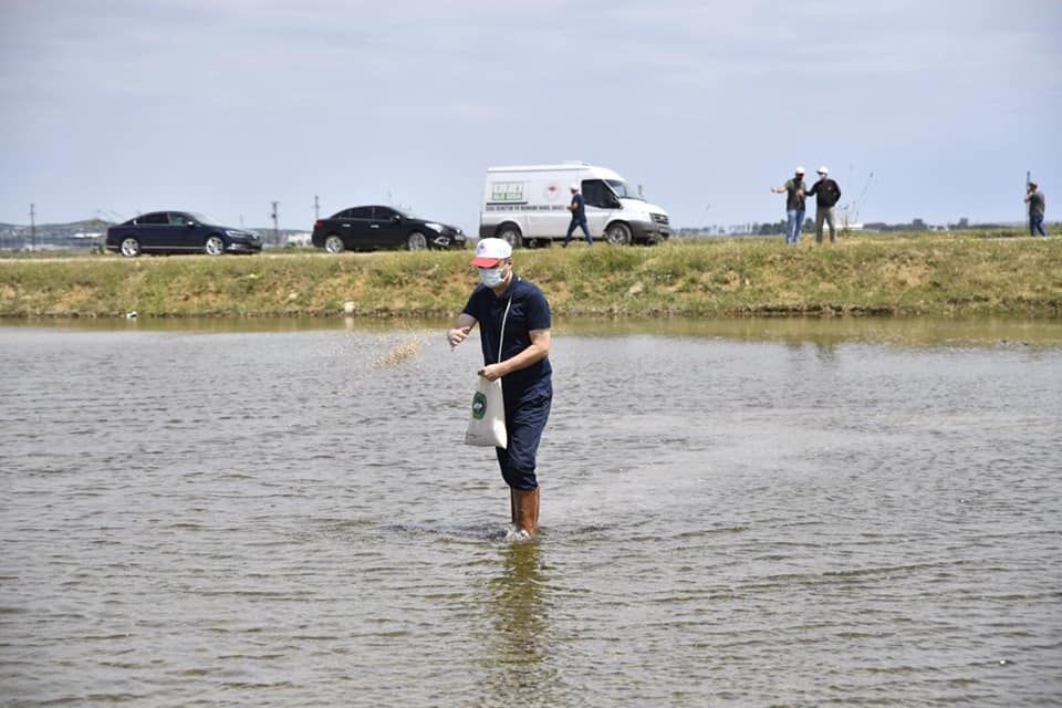 Bölgede ilk kez uygulanan proje ile tarım arazilerinin daha verimli şekilde kullanılma imkanı sağlanacağını söyleyen Vali Ekrem Canalp, çizme giyip çeltik için hazırlanan suyla kaplı araziye girerek elle çeltik tohumlarını toprakla buluşturdu.