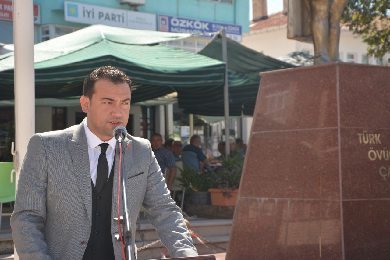Törende konuşan Cumhuriyet Halk Partisi İlçe Başkanı Ahmet Uğraş Uybaş, "Kurtuluş mücadelesinin ve kuruluş iradesinin siyasi önderi Cumhuriyet Halk Partisi 99 yaşında. Bugün bu tarihi mirası coşkuyla kutlamak ve Cumhuriyetimizin İkinci Yüzyılını hep birlikte inşa etme kararlılığımızı bir kez daha güçlü bir sesle beyan etmek için buradayız." dedi.