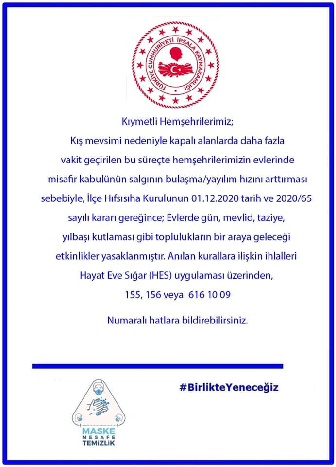 İpsala Kaymakamlığı sosyal medya paylaşımında “Çok kıymetli İpsalalı hemşehrilerimiz,