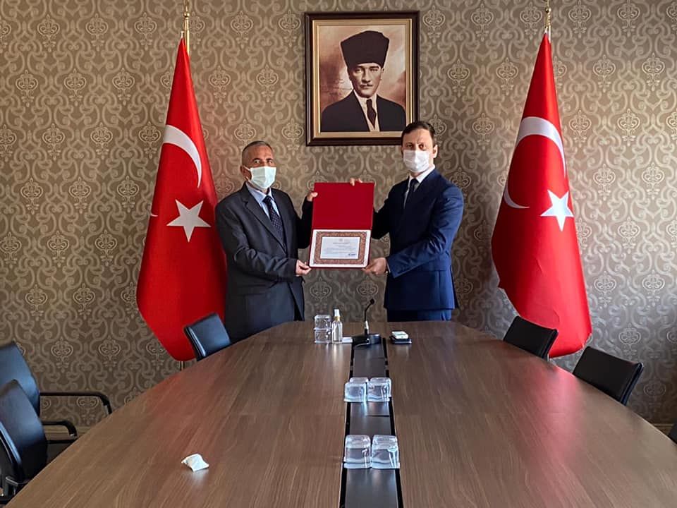 İpsala Kaymakamı Ekrem Güngör, 24 Kasım Öğretmenler Günü Programından sonra Kaymakamlık toplantı salonunda İlçe Milli Eğitim Müdürü Salih Mehmet Engin, İlçe Milli Eğitim Şube Müdürü Fatih Çetin ile beraber Hacıköy Ortaokul Müdürü Emekli Öğretmen Mümin Kon