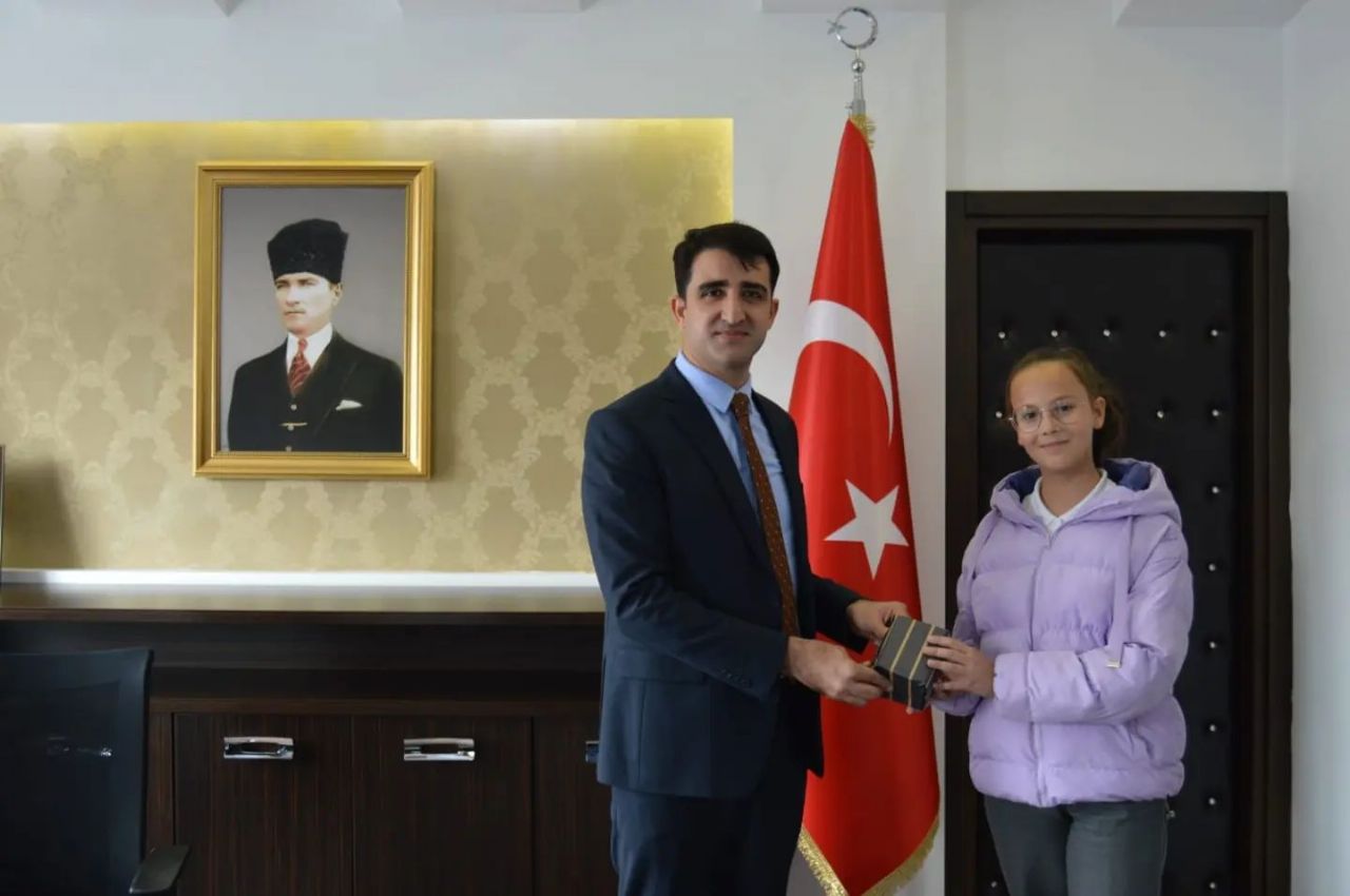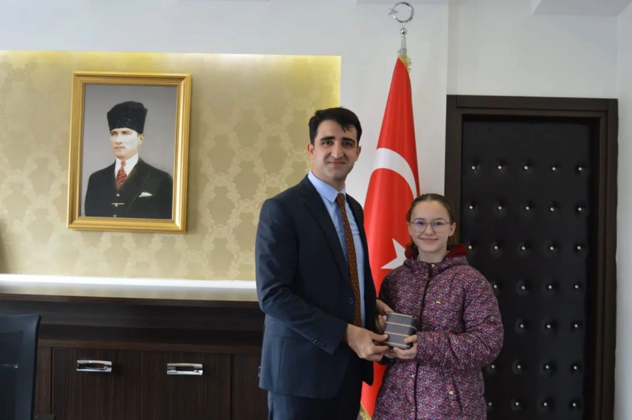İpsala Kaymakamı Ömer Sevgili, Edirne Süleyman Demirel Fen Lisesi'nde yapılan Ortaokullar Arası Matematik Yarışması'nda dereceye giren Atatürk Ortaokulu öğrencilerimizden 6.sınıf il birincisi Efe Kahveci'ye, 6.sınıf il altıncısı Öykü Erdem'e ve 7.sınıf il dördüncüsü Nilsu Uçar'a makamında hediyelerini vererek başarılarının devamını diledi.