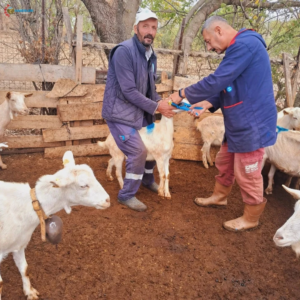 İpsala’da bulunan küçükbaş hayvanlara küpe tanımlama işleminin yapıldığı öğrenildi.