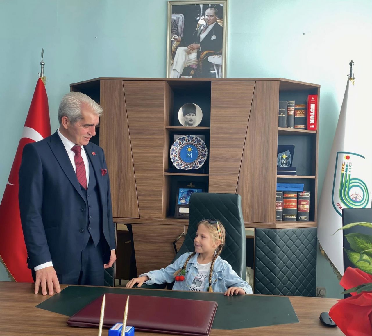 23 Nisan Ulusal Egemenlik ve Çocuk Bayramı dolayısıyla Kurtuluş İlköğretim Okulu öğrencilerinden Esila ve Miraç’ın hayallerine ortak oldu, Belediye Başkanlığı makamını çocuklara devretti.