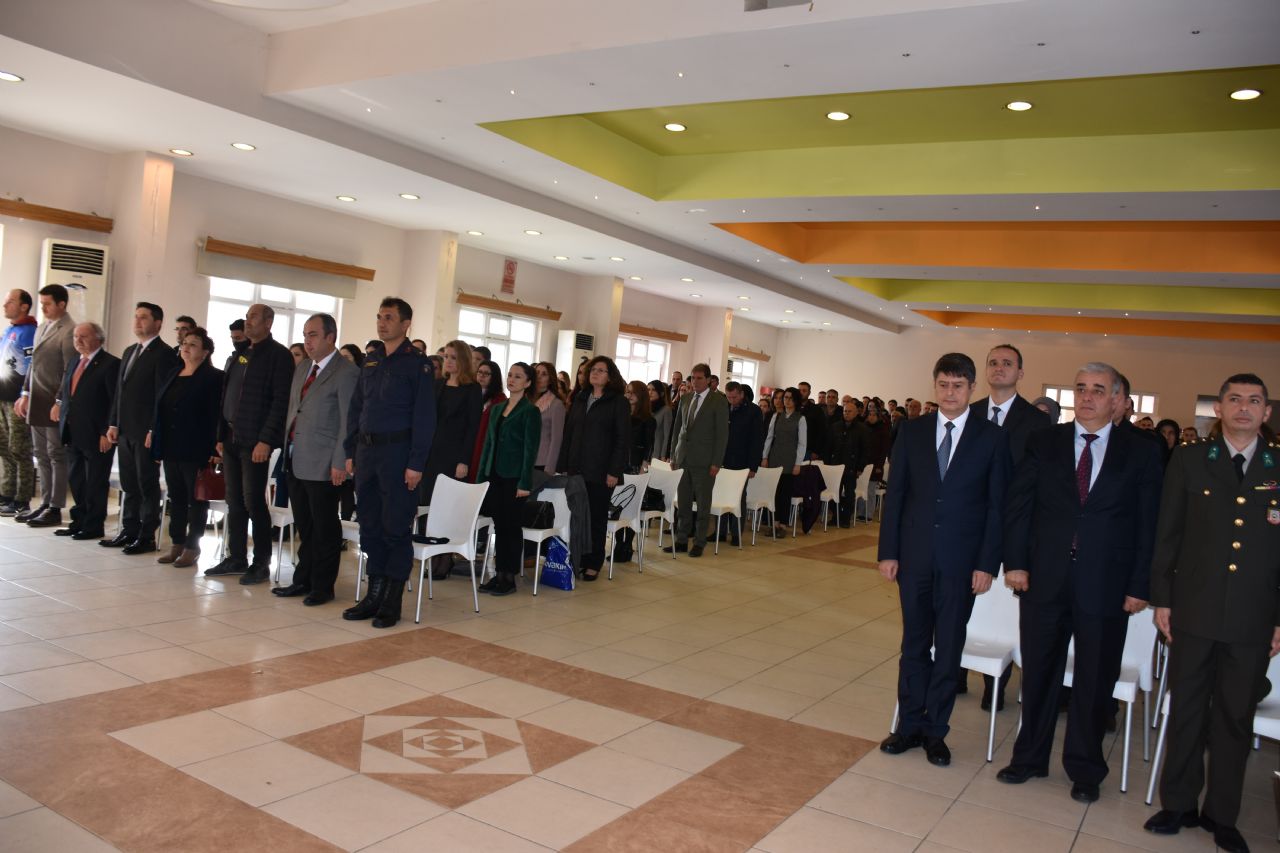Belediye Düğün Salonunda saygı duruşu ve İstiklal Marşı’nın okunması ile başlayan Öğretmenler Günü kutlama programı Milli Eğitim Bakanı Ziya Selçuk’un mesajının okunması, İlçe Milli Eğitim Müdür Vekili Serkan Palabıyık’ın konuşması ile devam etti.