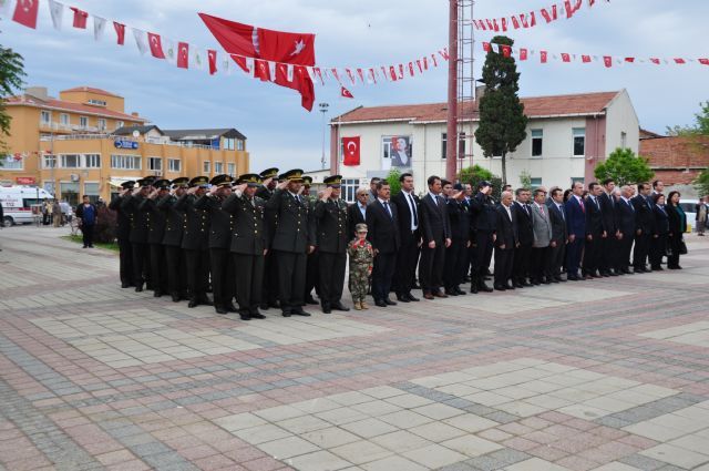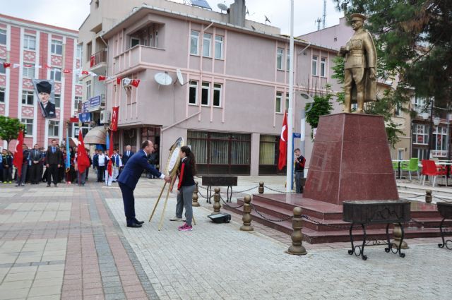 Kutlama törenleri bugün saat 09.00’da Cumhuriyet Meydanı’nda bulunan Atatürk Anıtı’na Milli Eğitim Müdür Vekili Salih Mehmet Engin tarafından çelenk konulması, saygı duruşu ve İstiklal Marşı’nın söylenmesi ile başladı.