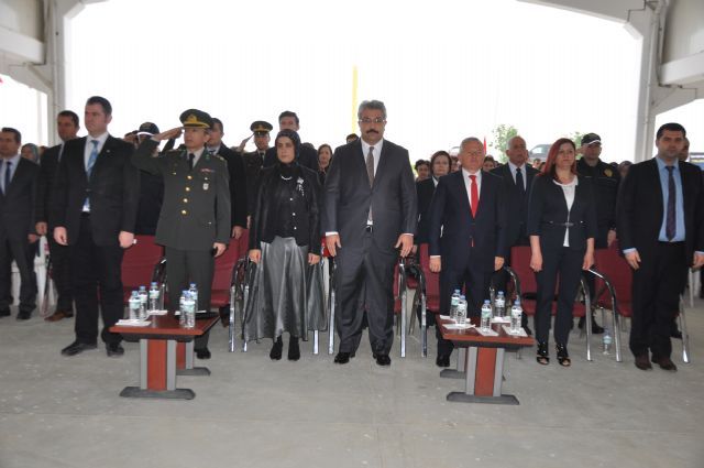 İstiklal Marşı’nın ardından günün anlam ve önemini belirten konuşma İlçe Milli Eğitim Müdür V. Salih Mehmet Engin tarafından yapıldı.