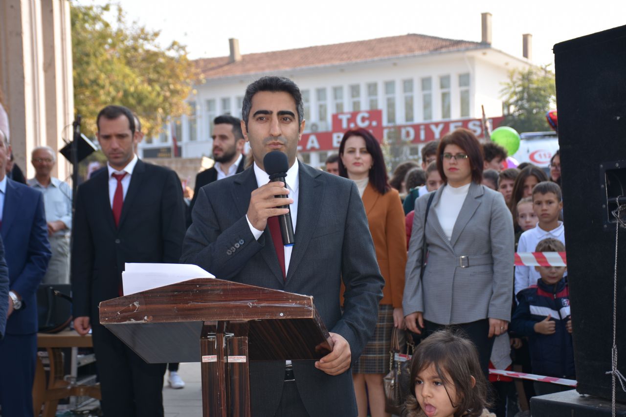 Cumhuriyet bayramını kutlayarak başlayan Aslantatar,”Bu bayram birlik ve beraberliğimizin en güzel nişanesidir. Bundan 96 yıl önce bu millet ayağında çarık yokken nasıl vatan savunulur bütün dünyaya göstermiştir. Şu an bile dünyanın en güçlü devletlerine karşı tek yürek olduk. Çanakkale’yi geçirmediler. Bunu da güzel bir zaferle taçlandırarak Cumhuriyeti ilan ettiler. Cumhuriyet ile beraber bu birlik beraberlik gelişti inşallah daha da gelişecek. 96 yıl önce gösterdiğimiz birlik ve beraberliği bugün de göstermemiz lazım. Kutsal olan bu bayrak gökten inmeyecek, ezanlar minarelerden susmayacaktır. Bu birlik ve beraberliği sağlayan başta Gazi Mustafa Kemal paşa olmak üzere şehitlerimize rahmet gazilerimize uzun ömürler diliyorum” dedi.