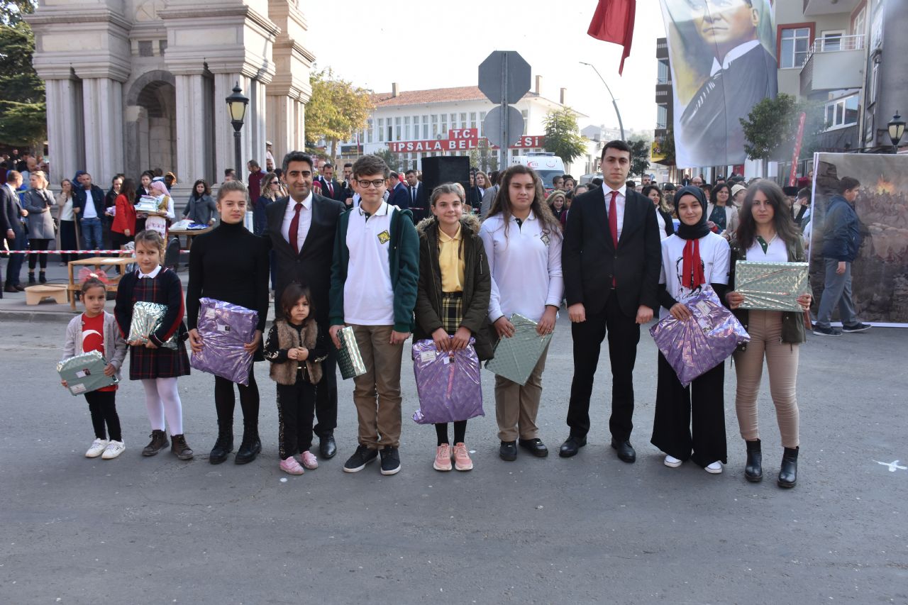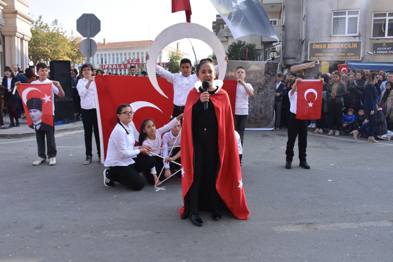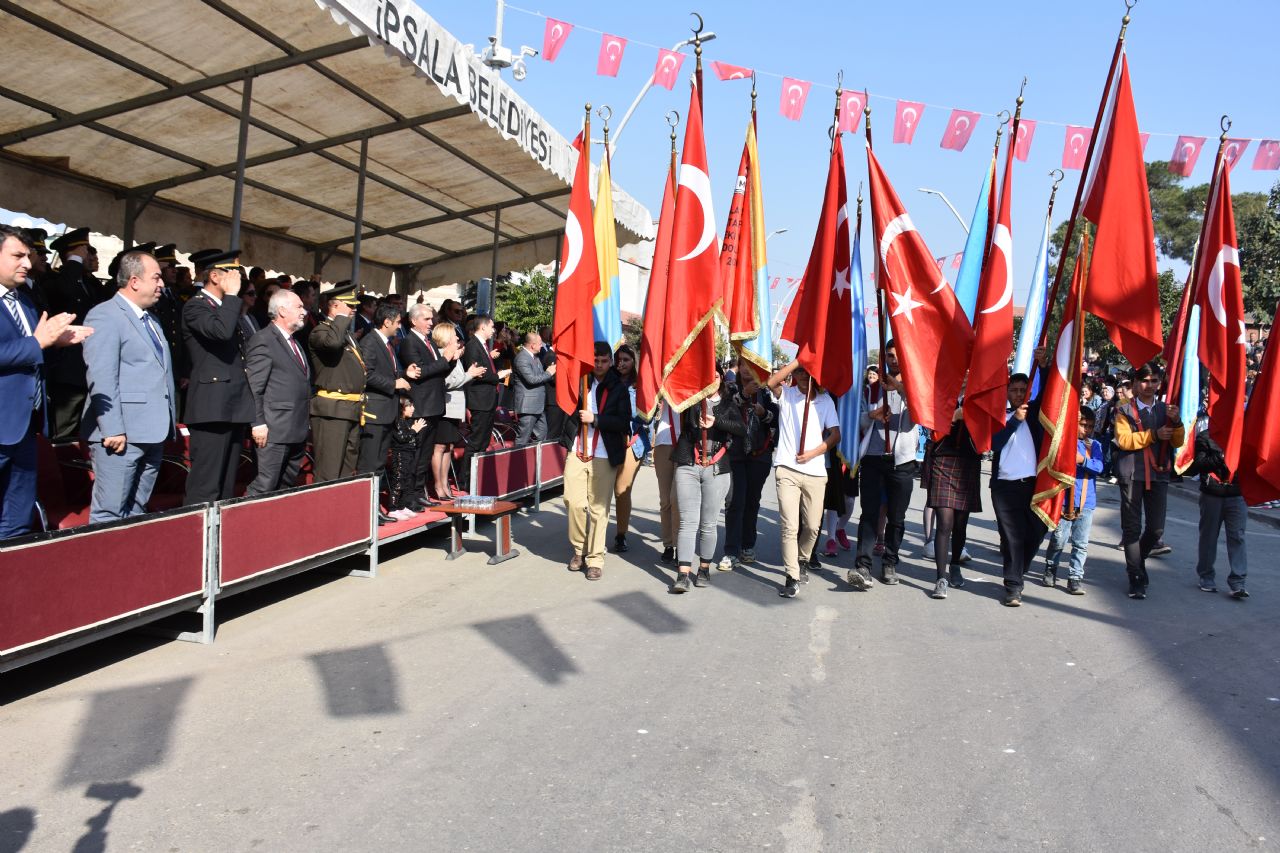 Türkiye Cumhuriyeti’nin kuruluşunun 96.yılı kutlama programına Cumhuriyet Meydanında devam edildi. Saat 11.00’de İpsala Kaymakamı Enis Aslantatar, Garnizon Komutanı P.Bnb. Çağlar Şimşek ve İpsala Belediye Başkanı Abdullah Naci Ünsal tarafından törene katılan öğrencilerin, öğretmenlerin ve halkın bayramını kutlamaları ile başladı.