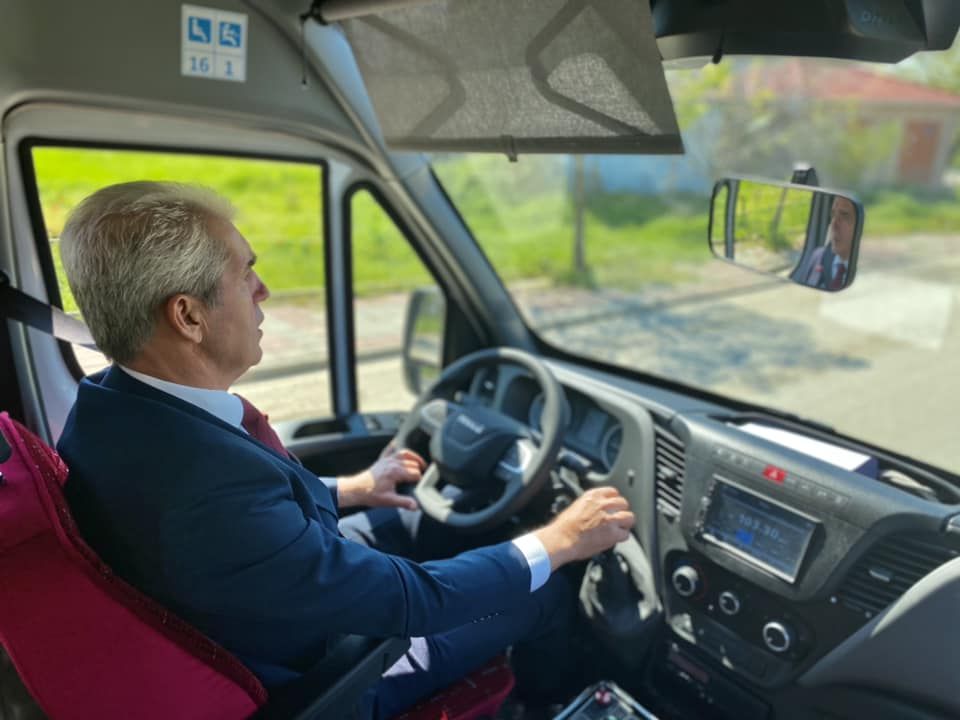 İpsala Belediye Başkanı Abdullah Naci Ünsal belediyeye yeni tahsis edilen minibüslerden birinin şoförlüğünü yaptı.