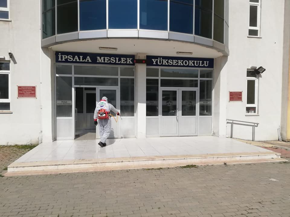 Ülkemizde ilk vaka görüldüğü andan itibaren İpsala Meslek Yüksekokulu belirli periyotlarda ilgili ekipler tarafından ilaçlanmaktadır. Tüm idari kat, sınıflar ve okul girişi olası riskleri karşı uzman ekipler tarafından ilaçlanarak steril hale getirilmiştir.
