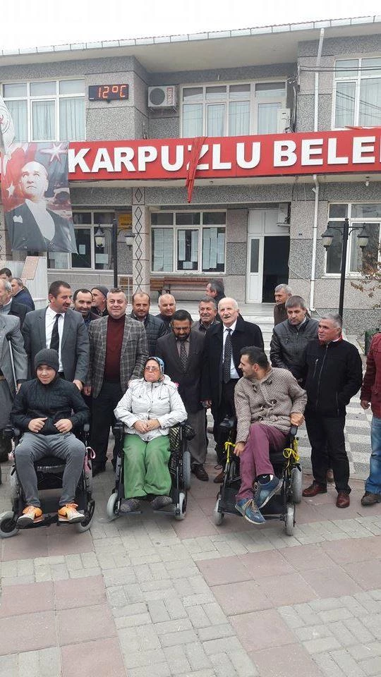 Yenikarpuzlu beldesinde geçen Cuma günü beldede yaşayan 3 engelli vatandaşa akülü araba hediye edildi.