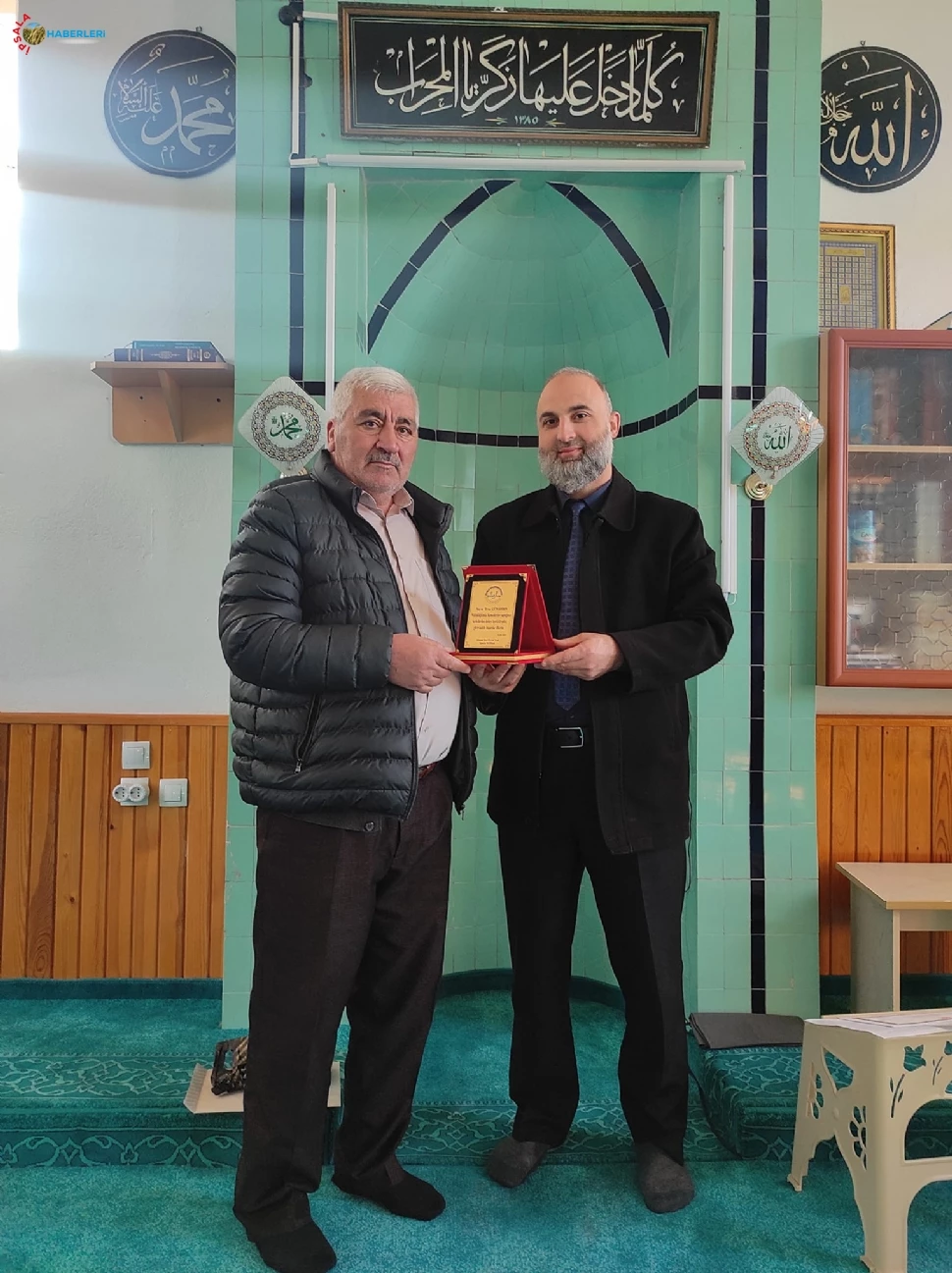 Bayraktar, Dertli Mustafa Bey Camii’nde Görev yapan İlyas Günaydın’a, yapmış olduğu hizmetlerden dolayı plaket takdim ederek teşekkür etti.