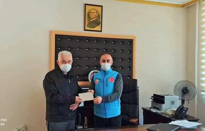 Suriye'nin İDLiB bölgesinde Türkiye Diyanet Vakfı tarafından inşa edilen iyilik konutlarına İpsala müftülüğü personeli ve hayırseverlerin katkılarıyla bir ev bedeli olan 6000 TL, TDV İpsala Şube Başkanı Ercan Özelce'ye din görevlileri adına Alaca Mustafa Paşa Camii İmam Hatibi Orhan Söyler tarafından teslim edildi.