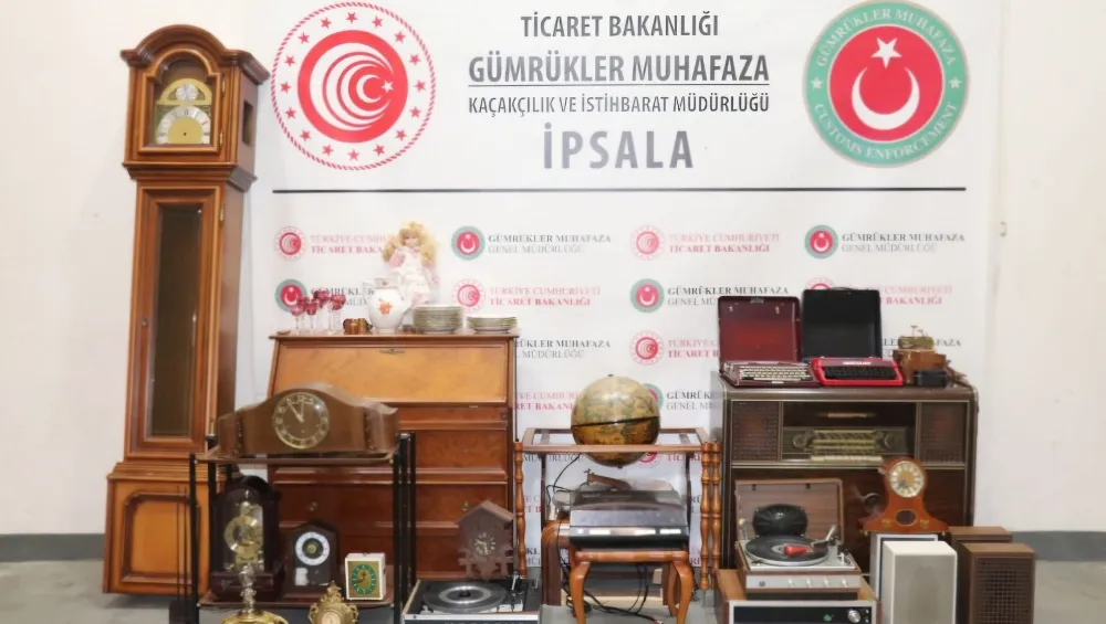 Yunanistan’dan Türkiye’ye giriş yapmak üzere İpsala Gümrük Kapısına gelen, Azerbaycan uyruklu I.I. yönetimindeki Çekya plakalı minibüs, İpsala Gümrük Muhafaza Kaçakçılık ve İstihbarat Müdürlüğü görevlileri tarafından şüphe üzerine X-ray taramasına sevk edildi. Tarama sonrası minibüste yapılan detaylı aramada, gümrük kaçağı toplam 62 parça antika plak çalar, duvar saati, daktilo ve fotoğraf makinesi ele geçirildi. Sürücü I.I. ile yanında bulunan Gürcistan uyruklu F.G. gözaltına alınıp, haklarında "5607 sayılı kaçakçılıkla mücadele kanununa muhalefet" suçlarından adli işlem başlatıldı.