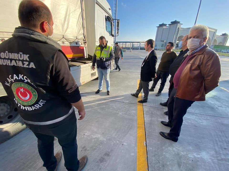 İpsala Kaymakamı Ekrem Güngör, İpsala Gümrük Kapısı iş ve işlemleri ve güvenlik önlemlerini inceleyerek, tırlarda yapılan denetleme işlemlerine katıldı.