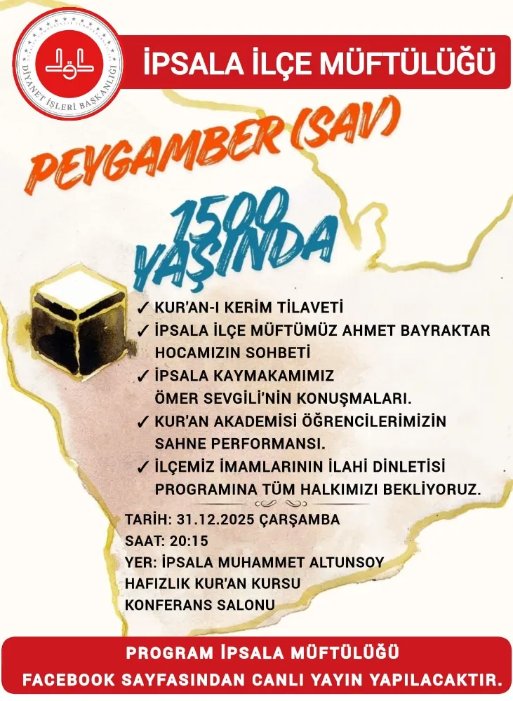 Program, 31 Aralık 2025 Çarşamba günü saat 20.15’te İpsala Muhammet Altunsoy Hafızlık Kur’an Kursu Konferans Salonu’nda gerçekleştirilecek.