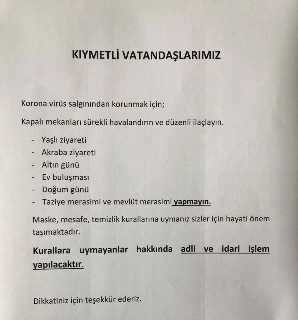 Ev kadınlarının kendi aralarında gün düzenleme, komşu ziyareti, doğum günü kutlaması gibi sakıncalı durumları yapmamaları istenen açıklamada, sosyal izolasyona da dikkat etmeleri istendi.