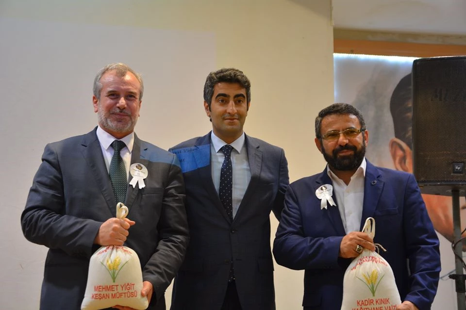 Programın sonunda Yenikarpuzlu Camii Müezzini Hasan Coşkun’un Karabük’e tayinin çıkması nedeni ile İpsala İlçe Müftüsü Ercan Özelce tarafından plaket takdim edildi.