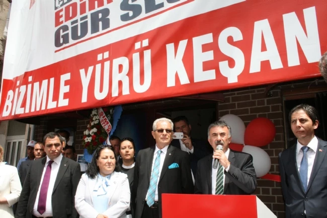 Büyük Cami Mahallesi Gürler Sokak No: 29 (Açık otopark arkası, eski Albatros Restaurant giriş katı) adresinde hazırlanan büronun saat 13.00 sıralarında başlayan açılış törenine; MHP Edirne Milletvekili adayları Gürsel Şimşek, Av. Şennur Yıldırım, Sefer Cem Elkut, MHP Edirne İl Başkanı Hakan Özkan, MHP Keşan İlçe Başkanı Erkan Gege ile Yönetim Kurulu üyeleri, bazı ilçe başkanları, kadın kolu başkanları ile yönetim kurulu üyeleri ve çok sayıda partili katıldı.
