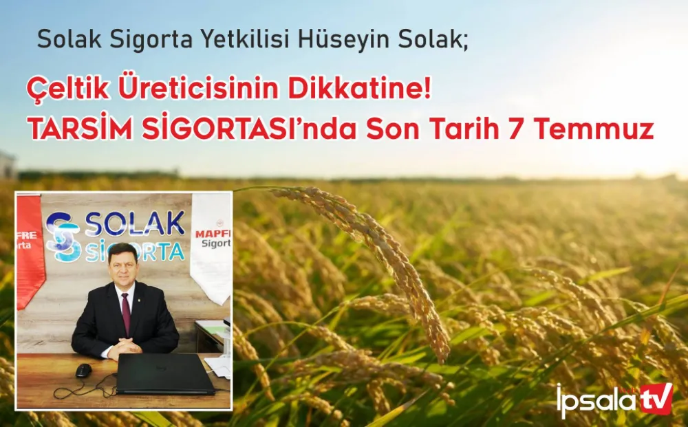 Solak; Bölgemizin en önemli ürünü ‘’Çeltik ve Sertifikalı Tohumluk’’ Tarsim Tarım Sigortası son kabul tarihi 07.07.2024 olduğunu bu tarihten sonra Tarsim sigortasının ‘’ön inceleme’’ yani eksper kontrolünden sonra düzenlenebileceğini bu uygulamanın da bir süreç aldığını, bu nedenle ilgilenen üreticilerin bu tarihe kadar poliçelerini onaysız düzenletilebileceğini kaydetti.