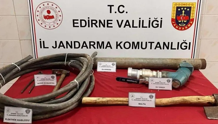 Karaincirli Köyü’nün su deposunda meydana gelen hırsızlık olayı ile ilgili araştırma yapan Enez İlçe Jandarma Komutanlığı ekipleri, olaya karışan 2 şüpheliyi tespit etti. Yapılan çalışma sonucu, 2 şüpheli; kaçmaya çalıştıkları araç ile birlikte yakalandı. Araçta yapılan aramada; 10 metre bakır/elektrik kablosu, 1 metre demir su borusu, 1 su vanası ve hırsızlıkta kullandıkları değerlendirilen malzemeler ele geçirildi. Gözaltına alınan şüpheliler, jandarmadaki işlemlerinin ardından adli makamlara sevk edildi.Haber Merkezi