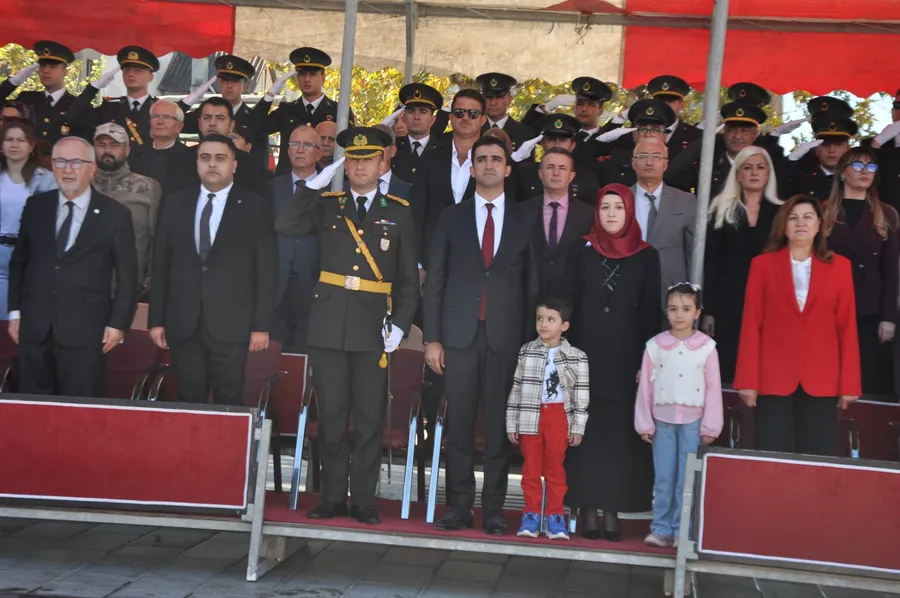 Ardından Cumhuriyet Meydanı’nda düzenlenen törende, Kaymakam Ömer Sevgili, öğrencilerin, askerlerin ve vatandaşların bayramını kutladı. Saygı duruşu ve İstiklal Marşı’nın okunmasının ardından, Kaymakam Sevgili günün anlam ve önemini belirten konuşmasını yaptı.